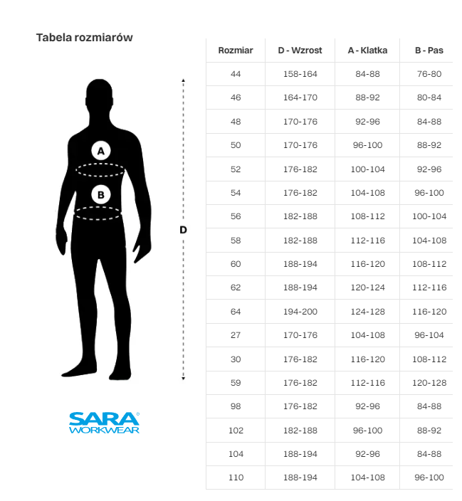 Pełna tabela rozmiarów dostępna jest w ostatnim miejscu w galerii produktu.