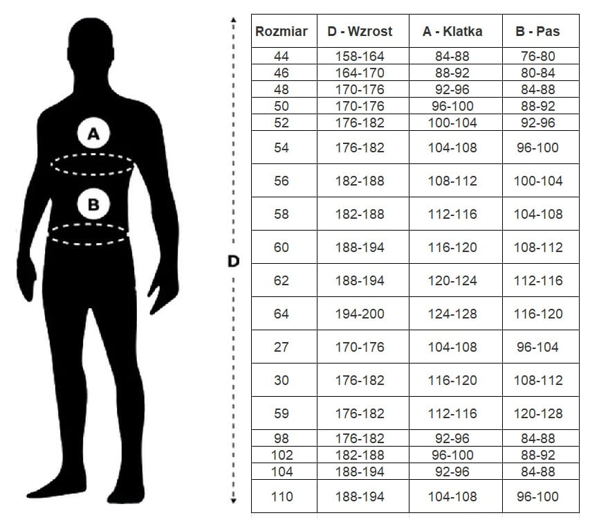 Pełna tabela rozmiarów dostępna jest w ostatnim miejscu w galerii produktu.