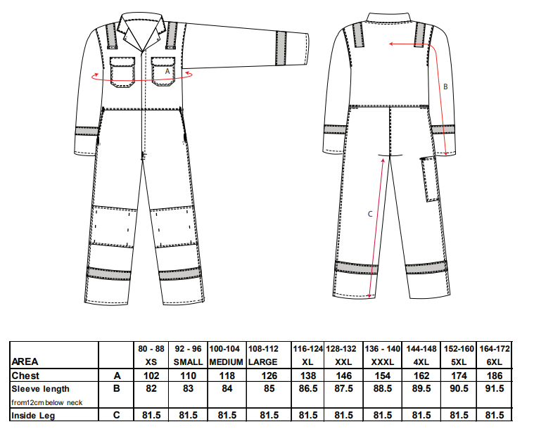 Kombinezon trudnopalny Bizweld Iona z naszytą na ramionach, rękawach oraz nogawkach trudnopalną taśmą ostrzegawczą. Cechy konstrukcyjne obejmują ognioodporną taśmę odblaskową na ramionach, rękawach i nogawkach, możliwość włożenia nakolanników w razie potrzeby, dużo miejsca do przechowywania i kieszeń na miary. Kombinezon posiada kieszenie boczne oraz na klatce piersiowej, z tyłu i dodatkowe kieszenie na nakolanniki.